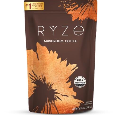 - Ryze mushroom coffee combines organic coffee with adaptogenic mushrooms like Lion’s Mane, Cordyceps, and Reishi